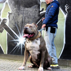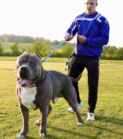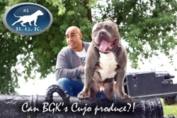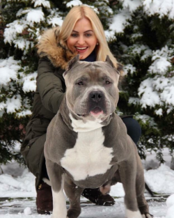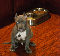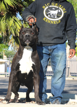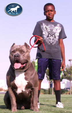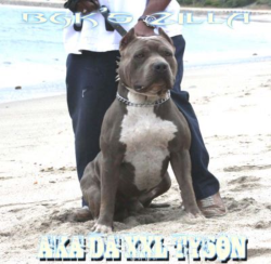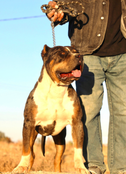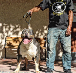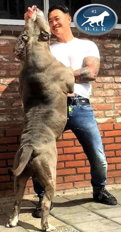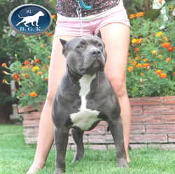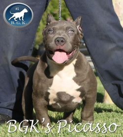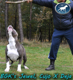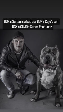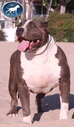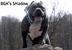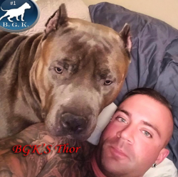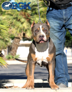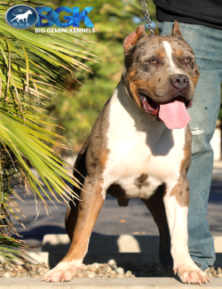 BGK's Stormy is a blue XL Bully who is also bluenose cryptic merle XL Pitbull. The daughter of MBK's Morpheus of Monster Bully Kennels